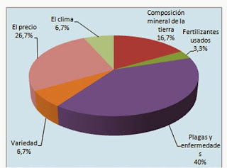 plagas y enfermedades con un 40%, seguido del precio con 26.7% y la composición